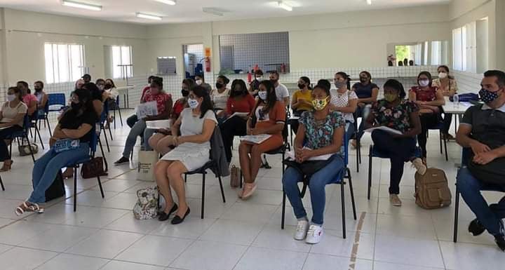 Esse momento foi uma interação dialógica, realizada pela secretária de educação Antônia Alves, a psicóloga escolar Helane Fernandes, Assistente Social Kézia Santos e a psicopedagoga Roberta Raymonisa Batista com os professores e Coordenadores da Rede Municipal de Educação.