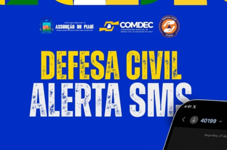 A Prefeitura Municipal de Assunção do Piauí, por meio da Coordenadoria Municipal de Defesa Civil, informou que já está disponível no município o serviço Defesa Civil Alerta SMS, ferramenta gratuita que permite o envio de avisos preventivos à população.