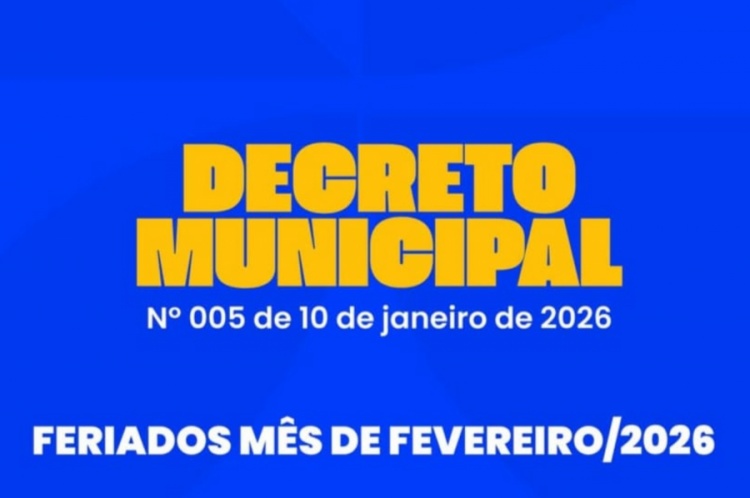 De acordo com o documento, será ponto facultativo nos órgãos públicos municipais no dia 16 de fevereiro de 2026. Já nos dias 17 e 18 de fevereiro de 2026, será feriado, sem prejuízo ao funcionamento dos serviços públicos essenciais.