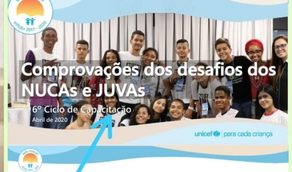 A adolescente Raissa Silva, do NUCA local, foi inserida em foto coletiva da capa-convite do 6º Ciclo de Formação do Unicef.